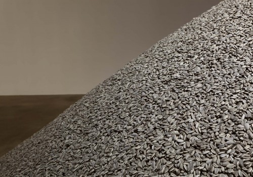 A pile of sunflower seeds. A graphic black and white installation with seemingly identical seeds that we all recognize. However, on closer inspection, it becomes clear that the seeds are inedible and made of porcelain. Sunflower Seeds provokes thoughts regarding the ‘Made in China’ phenomenon and the mass production that permeates a large part of our society. In 2010 Ai Weiwei captured the imagination of the international art world when he filled the entire floor of the Turbine Hall of Tate Modern in London with many millions of these individually made sunflower seeds. The present work at Magasin 3 is a rendition of this installation, which exists in several different versions (500 kg, 5 tons, 10 tons).