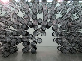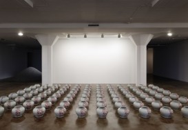 Working in different parts of the world both Ai Weiwei and Serge Spitzer are interested in the fetish of historical objects and how narratives often tend to go in circles. Every vase in the installation bears a reproduction of a certain section of the motif on the ancient vase. By repeating the motif and arranging the vases in a grid the artists hint at mechanical reproduction and fakes. The work stands in opposition to the traditional experience and valuing of unique artifacts because it is only when all the vases are assembled that they form the com- plete original motif.